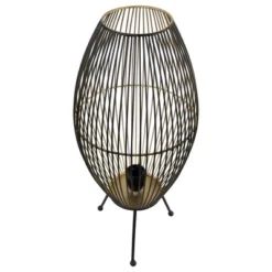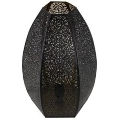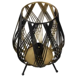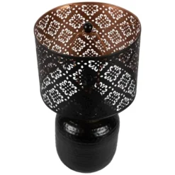 Northlight Laser-Cut Diamond Pattern Iron Table Lamp With Wood Base – 11″ – Black And Gold