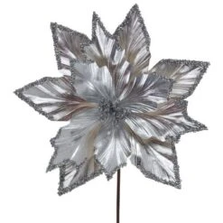 Northlight 24″ Metallic Silver Poinsettia Christmas Stem Spray