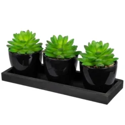 Northlight Mini Artificial Potted Succulents With Wood Planter – 5″ – Set Of 3