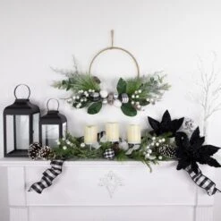 Northlight Red And Black Buffalo Plaid And Berry Artificial Christmas Wreath – 24-Inch, Unlit