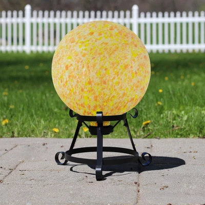 Thought to attract fairies and magical beings, gazing balls have been making gardens beautiful since the 13th century. Designed with a stemmed bottom with a rubber cap, making it easier to place into a stand (please note, this gazing globe does not include a stand; the stand must be purchased separately). This versatile piece is the perfect way to add style and charm to your garden.Product Features:Orange and yellow gazing ballReflective glassStand not includedRecommended for indoor and outdoor use Dimensions: 10″ diameter Material(s): glass