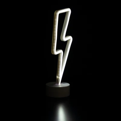 Strike some energy into your home with this neon lightning bolt! Our bold, battery-operated LED light adds a jolt of fun to any space – electrify a desk, jazz up a nightstand or bring a flash of brilliance to a kids’ room or game room. The sleek white LED neon light gives off retro-cool vibes with a modern twist – and since it’s cordless, you can flash your flair anywhere! Lightweight and easy to display, this neon lightning bolt lamp is the perfect way to add some shockingly good vibes to your decor.Product Features:One-sided designColor: white rope lightsRequires 3 AA batteries – not includedLED lights use up to 80% less energyStays cool to the touchComes with detachable base for easy storageConvenient on/off switch at the bottomUL certified and approved for indoor useDimensions: 11.5″H x 4.75″W x 3.5″DMaterial(s): plastic/siliconeNote: batteries not included