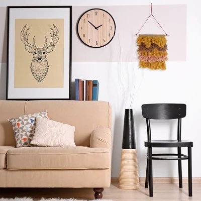 This small but mighty string art shade adds tranquility to any space with it’s muted, natural tonesDesigned with traditional tapestries in mindLayered strings of brown, yellow and pink are sewn on a tan, felt backdropReady to hang on a leather, burgundy cord strung on a wooden dowel Dimensions: 13″H x 13.75″W x 1″DMaterial(s): felt/string/wood