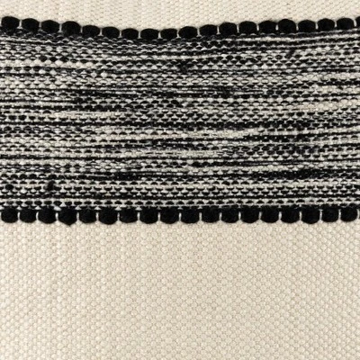 Add style to your outdoor seating area with this black and cream square pillow. Skillfully crafted using traditional handloom techniques, this cushion features thick, striped patterns in a black and cream color scheme. Made from durable materials, this cushion is perfect for outdoor use and is sure to withstand the elements. Whether you’re lounging by the pool, relaxing on your patio, or enjoying a meal in your garden, this cushion is the perfect size for most outdoor chairs and sofas. It is sure to become your favorite accessory for your outdoor living space, especially when paired with the matching handloomed throw rug. Product Features:Color(s):black and creamDesign is on one side onlyOutdoor square textured pillowHandloom woven polyester yard Adds comfort to patio chairs and sofasSuitable for indoor and outdoor use Zippered cover can be removed for cleaningCare instructions: use soap or detergent, rinse with clean water and allow to air dryDimensions: 20″ high x 20″ wideMaterial(s): polyester
