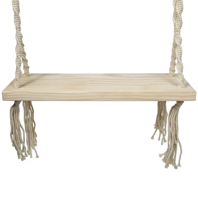 Add some style to your patio decor with this swing chair. A fun addition for your family and friends to enjoy at home while outdoors. This swing is designed with ivory ropes to hang and swing with a wooden seat. Great for indoor or outdoor use.Product Features:Ivory rope hanging swing chairFeatures a rope design with round metal ringsComes with attached wooden seat1-person swingRecommended for adults, children need to be supervisedRecommended for outdoor useDimensions: 1.25″H x 21.75″W x 8″DEach rope measures 57″ longMaterial(s): cotton/woodNote: swing chair, metal rings and hanging ropes only – hanging hardware are not included