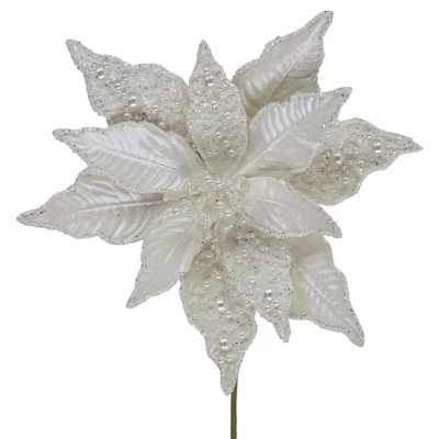 - Pearl White Poinsettia Christmas Stem Spray