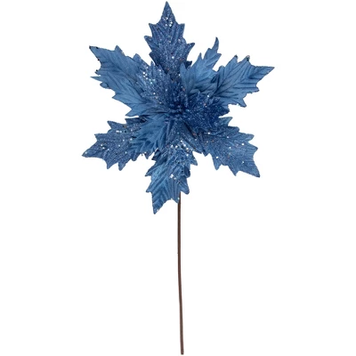 Northlight 24″ Glittered Blue Poinsettia Christmas Stem Spray