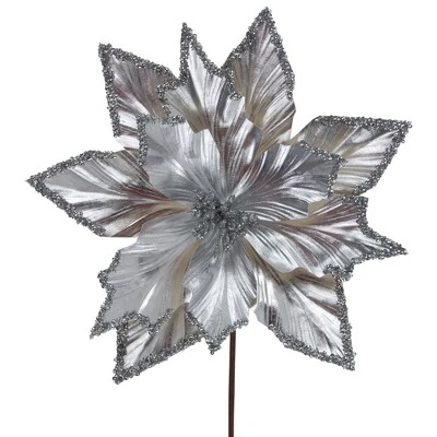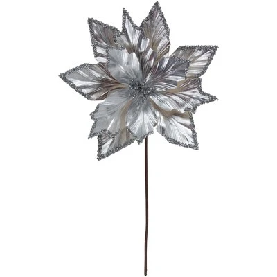 - Metallic Silver Poinsettia Christmas Stem