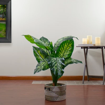 Elegantly add some color to any space while livening it up with our artificial dieffenbachia plant. This true to life faux potted plant is beautifully realistic with perfectly variegated leaves. Bring the charm of the outdoors to your indoors with this lovely piece of greenery! This plant will make a great addition for years to come to any space whether it be your home, office, or place of business. Product Features:Artificial dieffenbachia plantFeatures realistic variegated leavesComes in a weighted black plastic pot filled with artificial moss and dirt Can be displayed as is, or place the pot in a decorative planter to match your decorNo assembly required Recommended for indoor use, or outdoor covered useDimensions: 36″H X 34″WMaterial(s):plastic