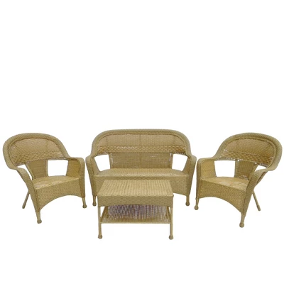- 4 Piece Honey Brown Wicker Outdoor Patio Furniture Set