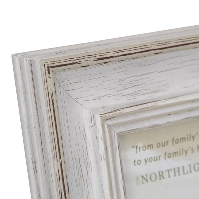 This striking photo frame is a classic and timeless way to display your cherished memories. Designed to hold a 4″ x 6″ photo, it is the perfect size for showcasing your favorite moments. This wood look frame features a distressed finish that adds a rustic, yet elegant touch to any decor.Product Features:Distressed white picture frameHolds one 4″ x 6″ photoCan be displayed vertically or horizontallyEasily displayed with the attached easelRecommended for indoor use onlyDimensions: 8.5″H x 6.5″W x .75″DMaterial(s): wood