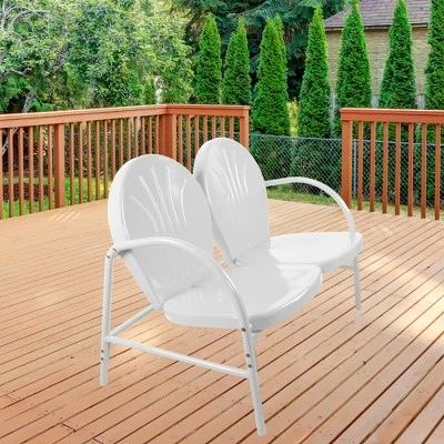 - Retro Style Outdoor Metal Loveseat; White
