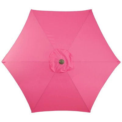 Keep the sun at bay in style with this richly colored market umbrella. Perfect coverage for a 30-inch bistro table and two chairs. Crank opening for easy use with a powder-coated steel frame and ribs for durability.Features:Umbrella shape: hexagonCanopy color: navy blueFrame and pole color: brownDiameter of open umbrella: 7.5’Height: 7.5’Pole diameter: 1.5″ (38mm)Lift: hand crank6 ribsMaterial(s): 160 gram polyester canopy/powder-coated steelNote: Umbrella only, base is not included