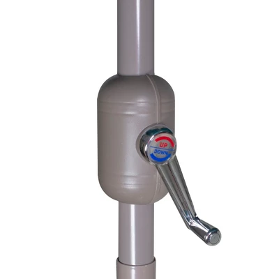 Stay shaded and cool this summer with our moderately sized market umbrella. Ideal for covering a 48-inch or four-person dining set. Features a sturdy, powder-coated aluminum frame with steel ribs, built to last a lifetime. The crank opening and push-button tilt mechanism allows for ease of use. Features:Umbrella shape: octagon Canopy color: brownFrame and pole color: brownDiameter of open umbrella: 9′ Height: 8′ Pole diameter: 1.5″ (38mm) Lift: hand crank Tilt: push-button tilt8 ribs Material(s): 160 gram polyester canopy/powder-coated aluminum pole/steel ribs Note: Umbrella only, base is not included