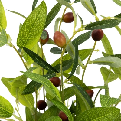 Your kitchens and dining areas can have a Mediterranean vibe with this artificial olive plant. It is designed with long green leaves and realistic olives interspersed throughout the branches. The rustic pot with handles that it is housed in, adds a cozy feel. It reads “Garden de Flower” providing a charming touch. Just perfect for tabletops and office desks.Product Features:Artificial olive plant in rustic potRealistic olives intertwined with green leavesPot reads “Garden de Flower” and has decorative handlesRequires no maintenance, watering, or sunlightItem will need to be re-shaped when removed from the boxCare instructions: wipe clean with a soft dry clothFor indoor use onlyDimensions: 14″ highPot: 4″ high x 4″ wideMaterial(s): plastic