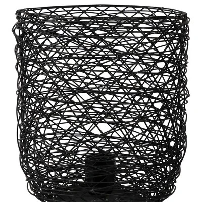 This iron table lamp features a striking basket weave design, adding a touch of charm to any room. The black finish complements both modern and traditional decor, making it a versatile addition to your home. With its intricate detailing and sturdy construction, this lamp not only provides warm, ambient light but also serves as a sophisticated decorative piece. Perfect for side tables, nightstands, or desks, it brings a unique blend of style and function to your living space.Product Features:Base: E26 bulb baseLamp uses (1) 60 watt bulbs (not included)2-way button switchWire color: BlackCord length: 7.5’UL-certified for indoor use120 volts, 60 hertz, 7 wattsDimensions: 14.5″ high x 8.5” diameterMaterial(s): iron