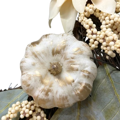 - White Dahlia And Pumpkin Artificial Floral Wreath