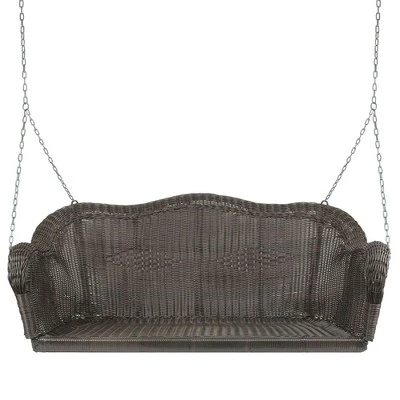 Add this beautifully hand-woven, resin wicker swing to your porch or patio, and relax while watching the sunset, or simply catch some fresh air while reading a book. This all-weather swing has a traditional wicker design with hand-woven lattice work and a diamond pattern. Resin wicker is flexible and fade-resistant for lasting functionality, while the powder-coated steel frame is sturdy for extra durability. It offers comfortable seating for two people and comes fully assembled with hanging chains and hooks included. Simply mount the swing to your porch or patio and get ready to enjoy those summer evenings at home.Product features:Color: chocolate brown2-person swingWeight capacity: 450 lbs.Swing comes fully assembledFlexible and fade resistant for lasting functionalityAll weather resistant lattice and diamond patternHanging chains and hooks includedFinish is made from the highest quality power paints that will withstand peeling, blistering, and oxidationPowder coated steel frameCare instructions: hose off and wipe clean Overall product dimensions: 22.5″H x 51″W x 23″DSeat width: 39″Seat depth: 18″Seat back: 22″H x 44″WChains: 7′ longHanging hooks: 8″ longMaterial(s): steel/resin wicker