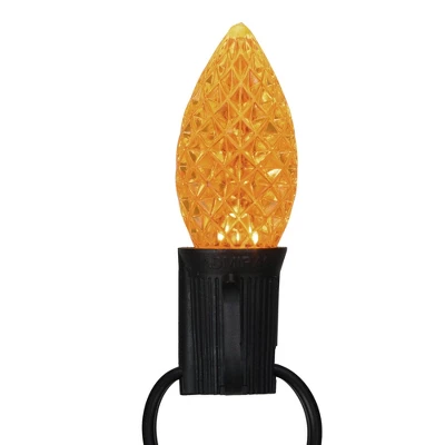 Product Features: Finish: transparentfacetedColor: orange, blue, green, amber and purpleBulb size: C9E17 nickel base UL approved for indoor/outdoor use 120 volts, .6 watts