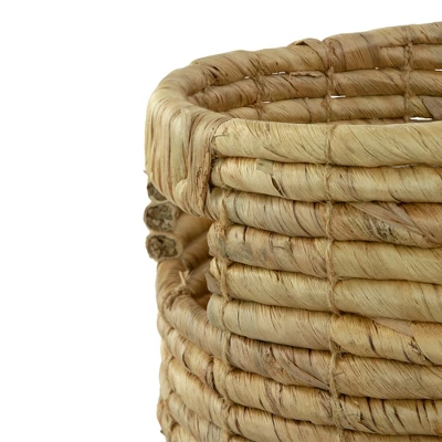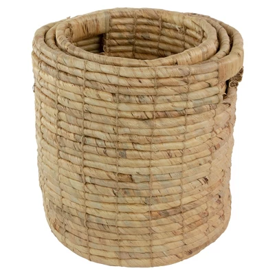 Add some texture to your home with this lovely basket set. These simple seagrass baskets are a wonderful rustic addition to the living room, kitchen and bedroom. They are great functional pieces to store blankets, or to display as a simple accent by themselves. Features:Sturdy cylindrical baskets Light brown woven designLarge grip handles are designed in the basket for easy carryingSmaller basket can be nested inside larger basketsCan hold various household or office itemsRecommended for indoor use onlyDimensions:Small: 12″ high x 10″ diameter Medium: 13″ high x 12″ diameter Large: 14″ high x 14″ diameter Material(s): seagrass