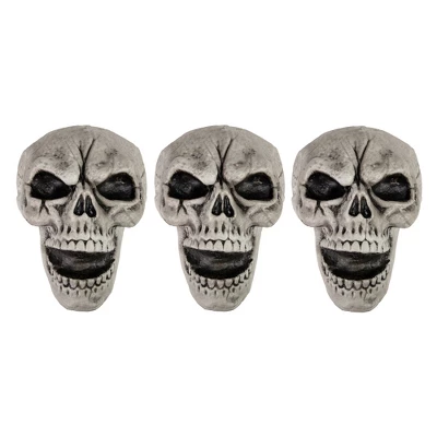 Transform your yard into a spooky graveyard with this set of skull outdoor Halloween decorations! Made with durable and weather-resistant materials, these eerie skull stakes are perfect for adding a touch of macabre to your outdoor Halloween decor. Easy to install and secure in place, these skull stakes are sure to send shivers down the spines of trick-or-treaters and guests alike. Features:Set of 3 skull yard stakesEach skull includes one 8″ stakeEasy to install and secure in place, so you can quickly set up your outdoor Halloween displayDesigned to withstand the elementsRecommended for outdoor useDimensions: Skull only: 7″H x 5.5″W x 4.75″DSkull with stake: 15″ highMaterial(s): plastic