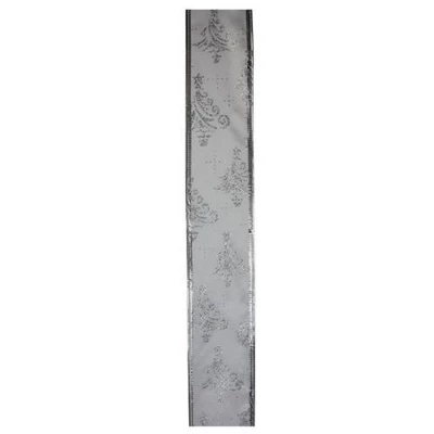 - Silver Shimmering Trees Printed Wired Craft Ribbon
