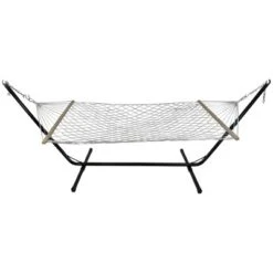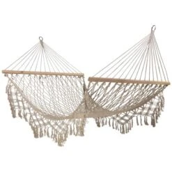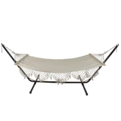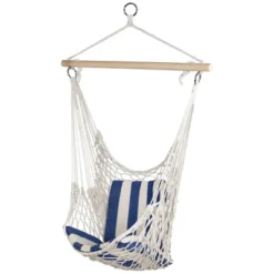 Northlight Macrame Cotton Hammock Chair With Striped Cushion – 46″ X 35.25″ – Cream And Blue