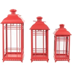 Northlight Set Of 3 Red Mosaic Stained Glass Solar Powered LED Pathway Markers, 15.5″